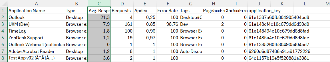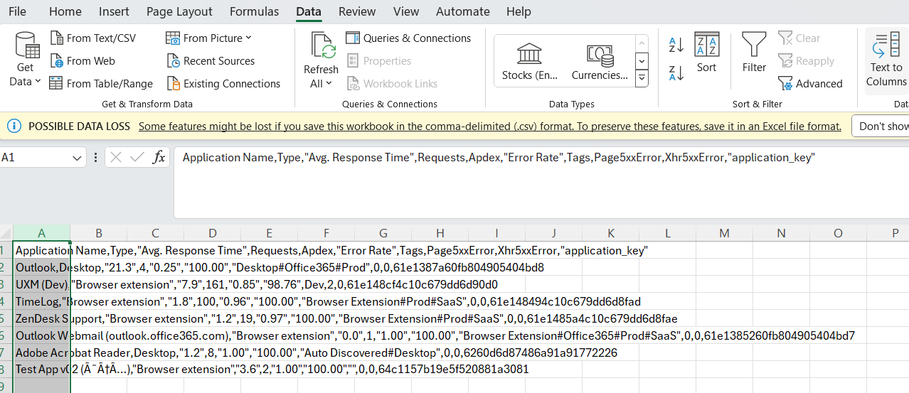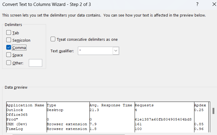 - Fields that contain text/dots/commas begins and ends with double quotes