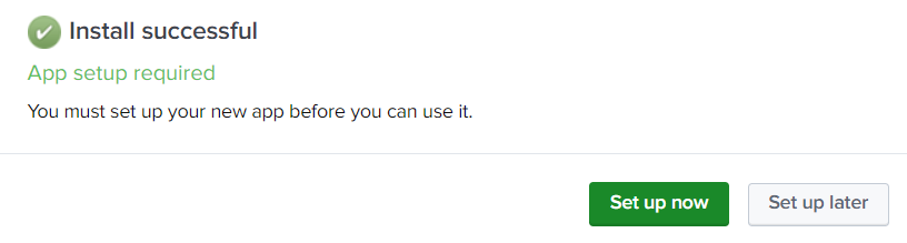 Select "Setup Later" or "Restart Later" if asked, the standalone_000_setup_app.py script have to be executed first before restarting Splunk or setting up the app.