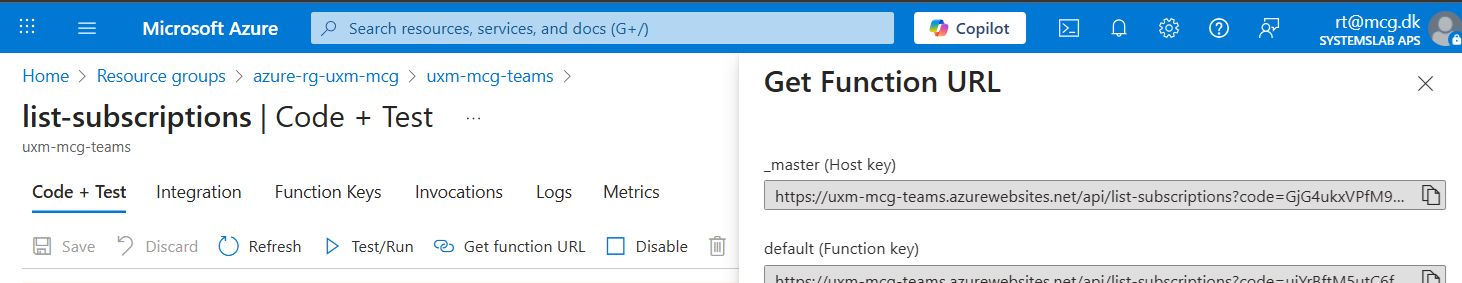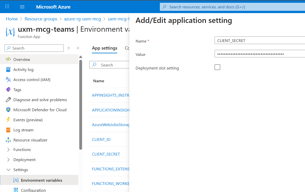 Press "Add" and copy out the key to a secure location and store it for setup in Azure Functions and UXM Teams Add-on.