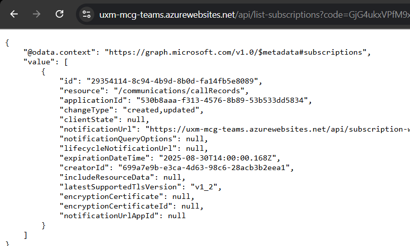 Open Overview -> list-subscriptions and press Get function URL, open _master and ensure a callRecords subscription exists