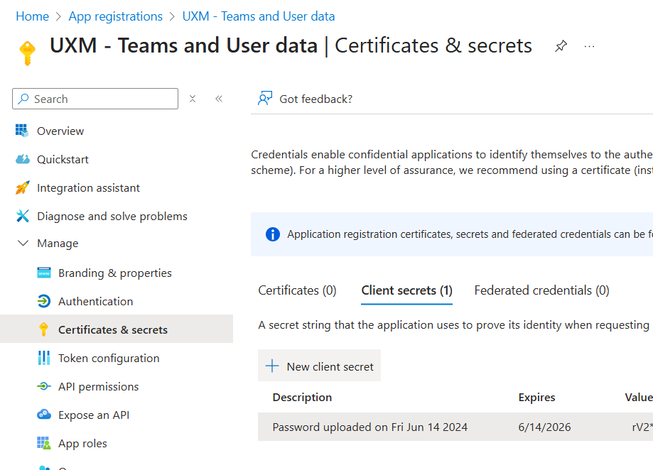 To allow UXM to query the Office 365 Management API's and Teams Call details, an Azure app registration needs to be created.