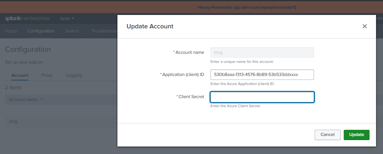 Create Configuration under "Microsoft Teams Add-on For Splunk" app and Configuration tab