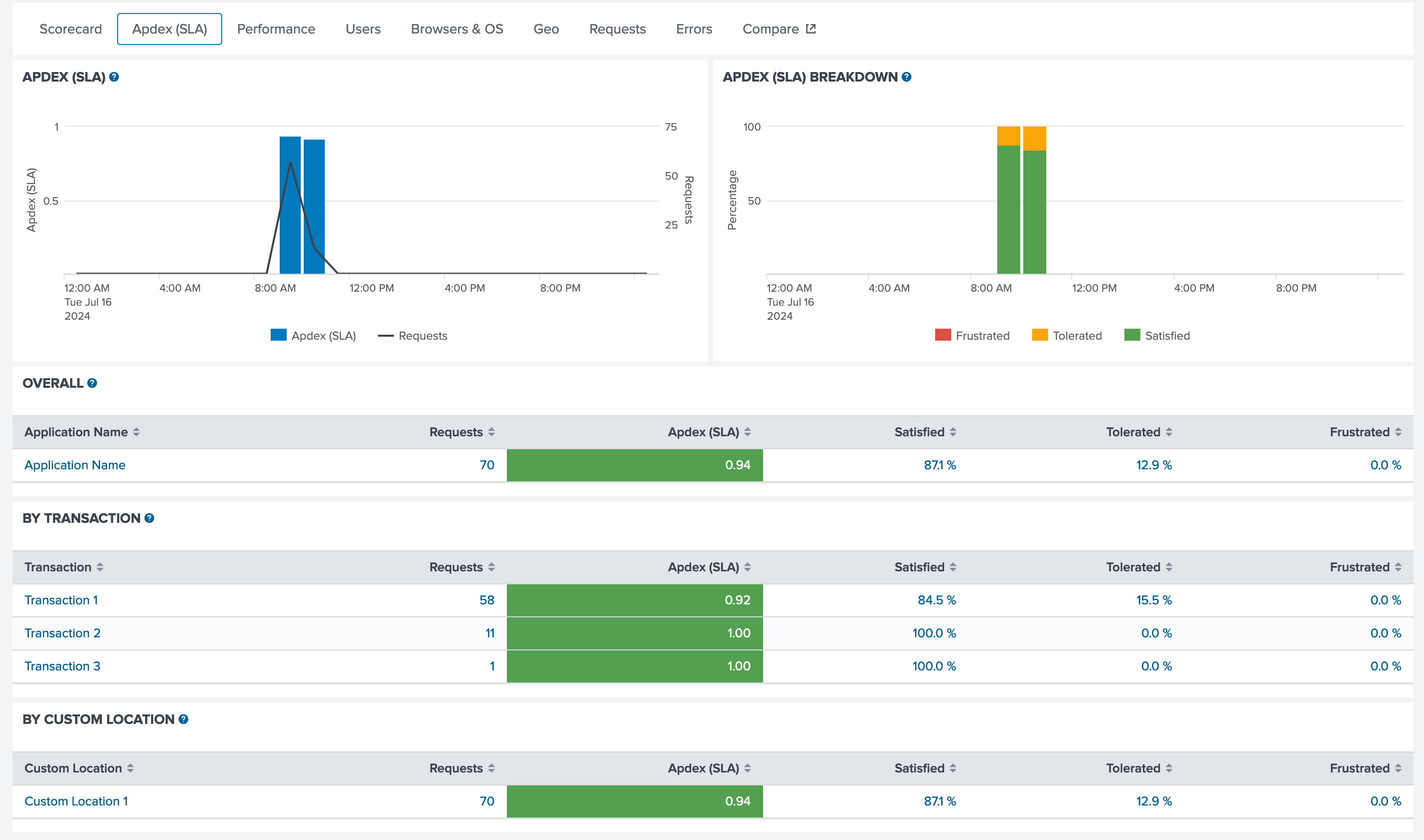 Apdex (SLA): Application Performance Index, also known as Apdex, is an open standard intended to simplify reports of application performance. The closer the value is to 1, the better the performance.